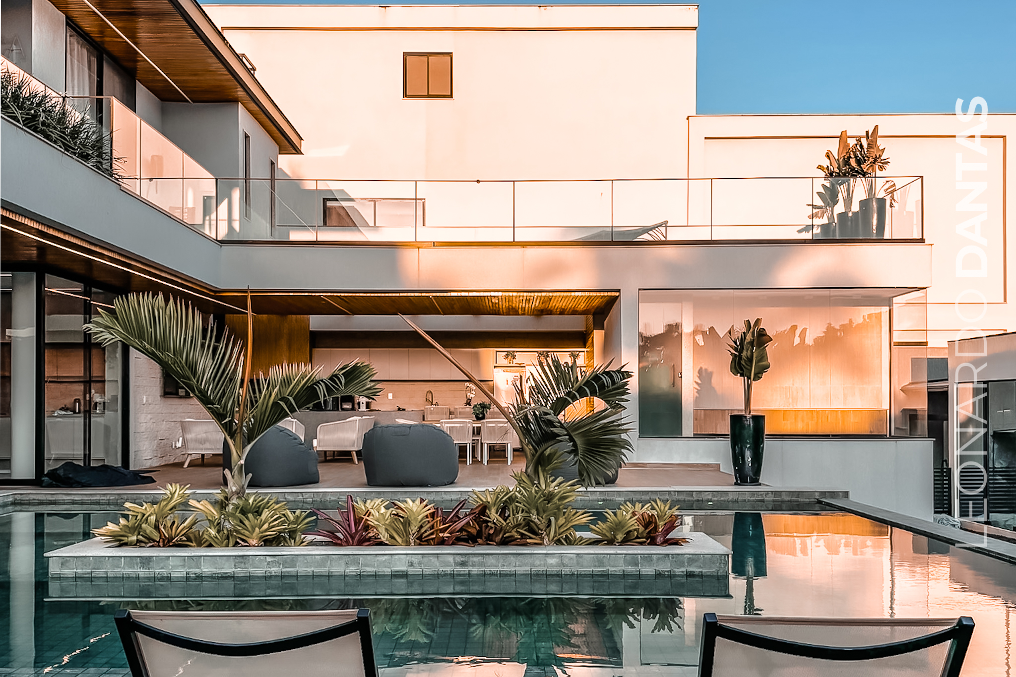 Área gourmet externa : Área molhada da casa conta com piscina com 100 m² de borda infinita, hidromassagem aquecida e jardim flutuante, prainha com espreguiçadeiras, um espaço de descanso de spa a céu aberto com grama, redário e puffs. A casa conta com uma edícula onde funciona um estúdio de vidro autônomo, mobiliado, todo estruturado pronto para gravação e criação de conteúdo. Churrasqueira da @kaferchurrasqueiras, onde todo controle pode ser realizado e programado pelo celular de maneira remota e eletrônica, acabamentos em mármore travertino, bancada em ilha, geladeira, freezer, mesa para 10 lugares, TV.