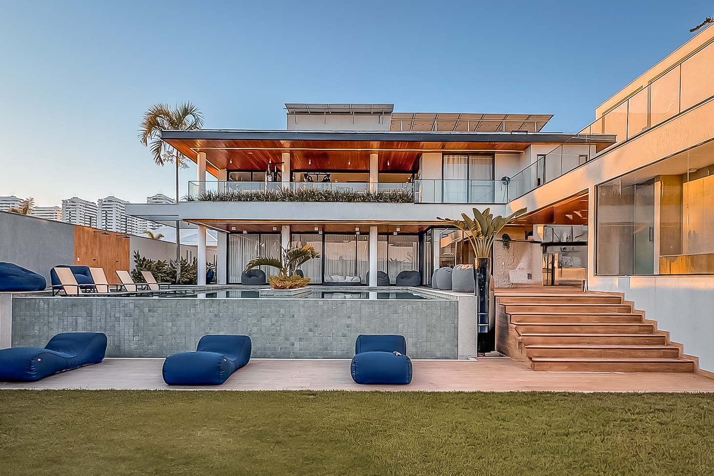Possui sauna a vapor, além de banheiro duplo para atender o espaço juntamente com a área de churrasco. A acsa com sistema de placas solares já instaladas e funcionando (58 placas), automatizada com Alexa e irrigação automática em todo jardim.