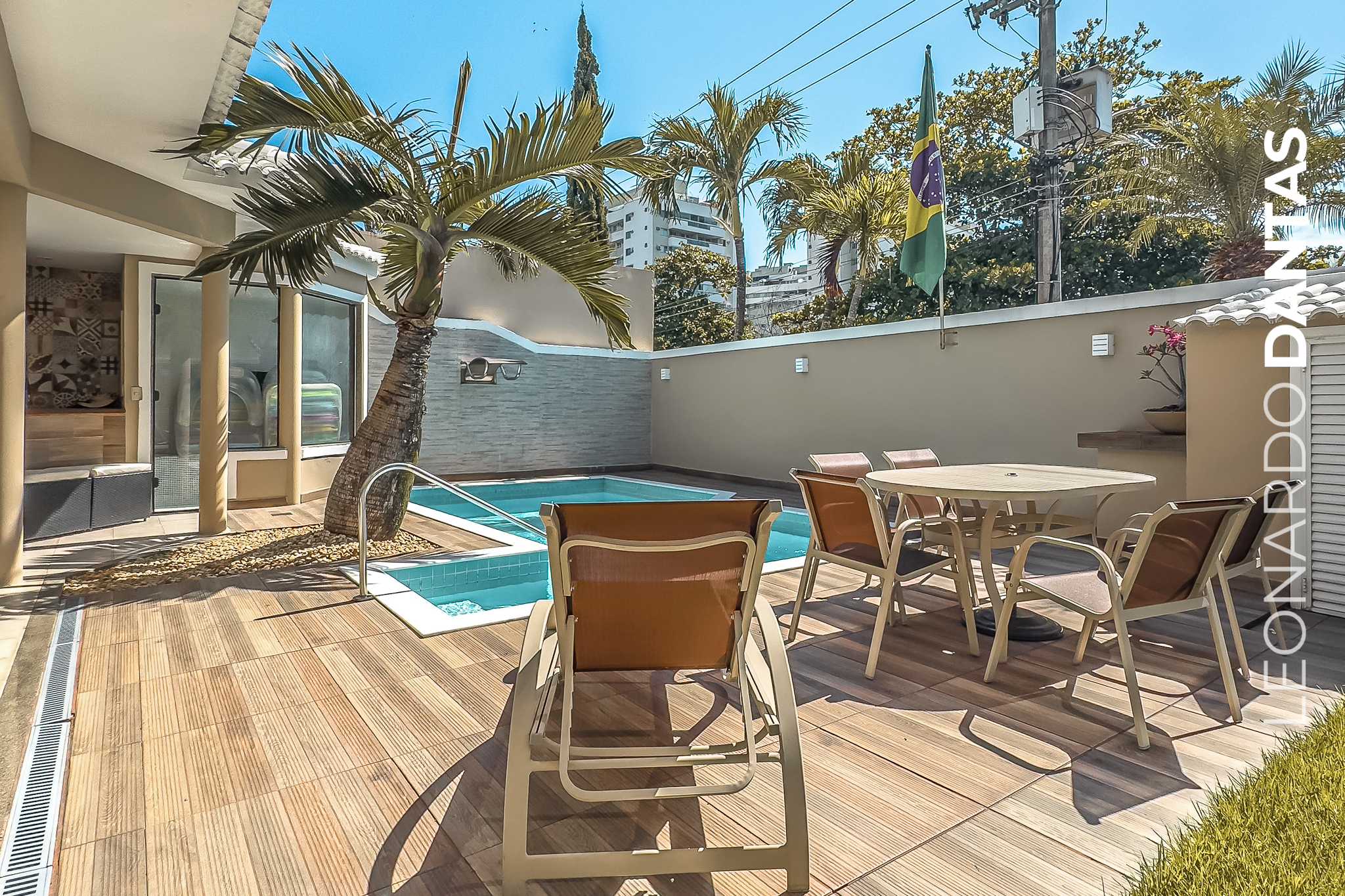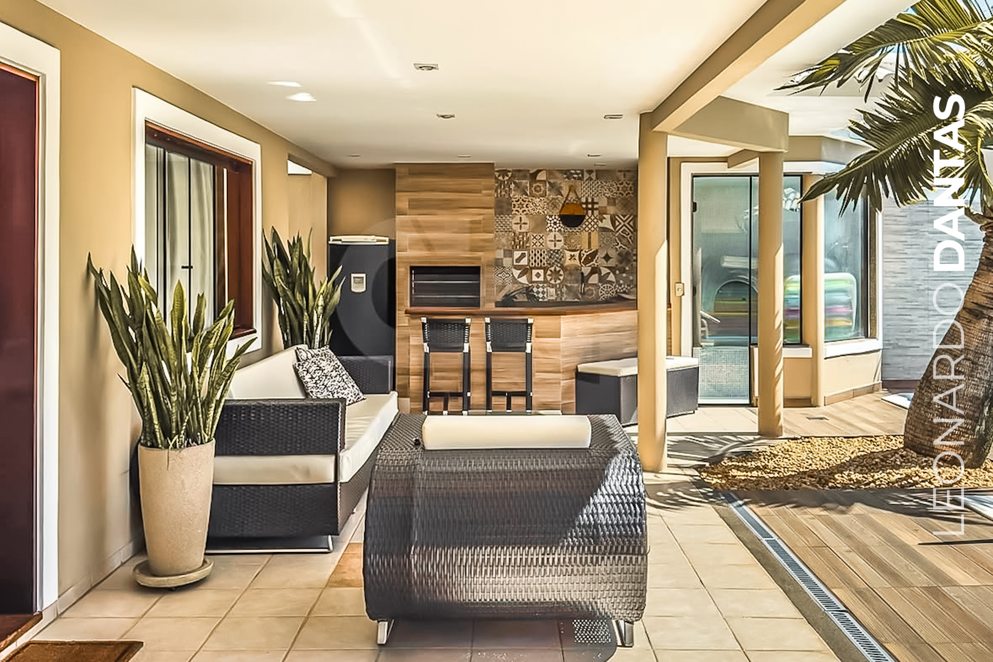 O lazer é completo: piscina elegante, sauna, churrasqueira e living coberto, além de um jardim aos fundos que transforma o cotidiano em um refúgio verde e sereno.